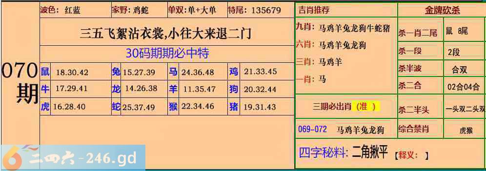 070期:30码期期必中特