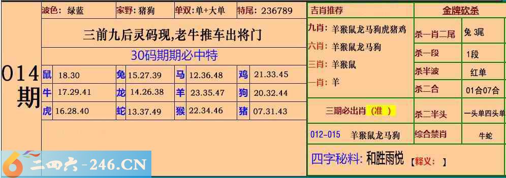 014期:30码期期必中特