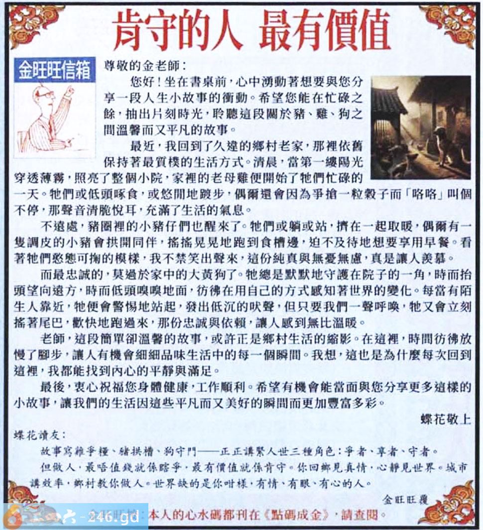 004期:金旺旺信箱彩民推荐→→《肯守的人 最有價值》