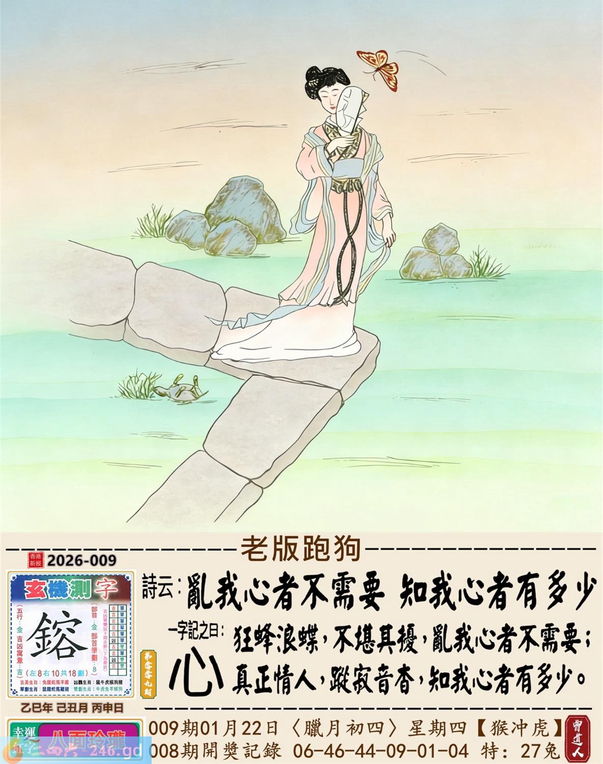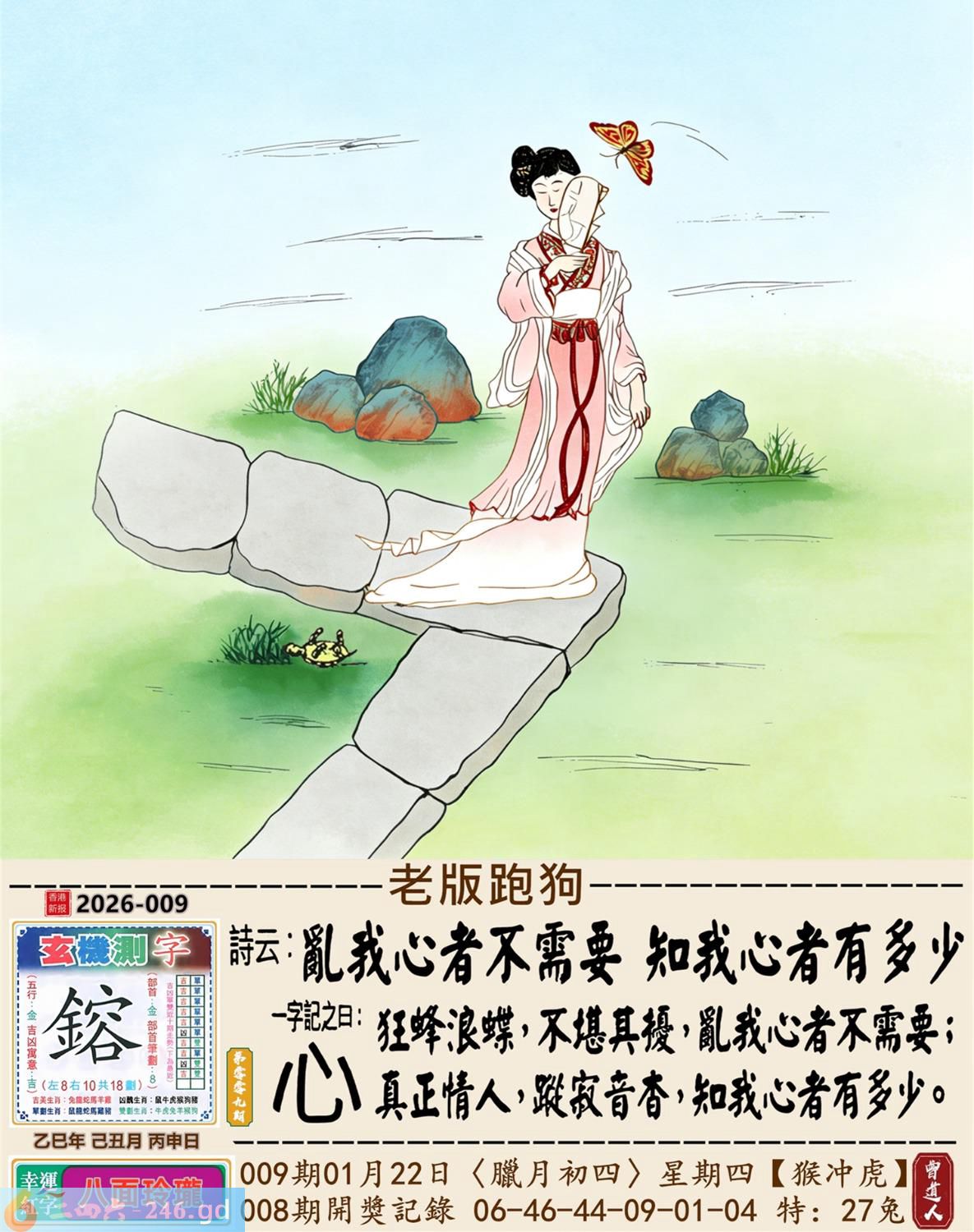 2026年1月22日009期虎(庚寅)(山下火) 009期:老版跑狗玄機一字記之曰:【心】 詩云:亂我心者不需要知我心者有多少 狂蜂浪蝶,不堪其擾,亂我心者不需要; 真正情人,蹤寂音杳,知我心者有多少。 玄機測字:《鎔》 密圖詩:榮華富貴享不盡 《記》:姑息養奸翻賊船 特碼大小單雙句:特碼不是凡夫采 今期必中:劉備 009期:特碼歇后語 禾苗怕蝼蛄-----一物降一物 009期正版四字梅花诗:焉知非福。 009期火车头:烧伤龙。诗:马死蛇伤,鸡猪伪装寻主生。 009期香港第一手欲钱料:二。 009期曾道人说:“三星?” 009期另版四字梅花诗:变出中间。 009期香港第一手欲钱料:欲钱看一力金毛遍全身。 009期曾道人说:“女人二十最喜欢得到什么东西”? 009期:二字經:超強 009期:八哥是特码 009期:智力金壤;凿壁偷光 009期:信箱紅字:【藏形匿影】 009期:【暗碼:11-25-38-49】 009期:一語中特:【七上八落】 發財玄機圖:聲威震天電閃雷動圖中明龍紅綠 009期:藏寳圖 新:吊屈谁知特怆神 老:小男供饵妇搓丝 禁:猴禁:4尾玄機字《醋》 2026年009期【生活幽默】版 〖你想過富裕的生活嗎〗 科恩是醫學院的學生,他想學心臟外科,又拿不定主意,于是去請教奥本教授。奥本教授問他:"小伙子,你想過富裕的生活嗎?" "當然!" "那你應當學牙科。""爲什呢?" "你想想,人的心臟祗有一個,而牙齒却有二三十颗。"