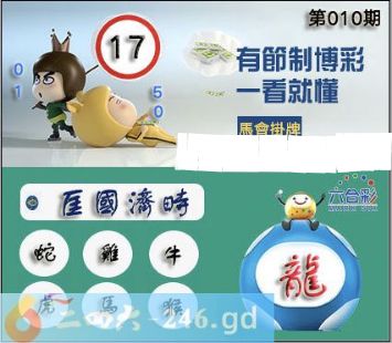 2025010期2026年010期正版彩图挂:17 爆:龙 挂牌成语:匡国济时 挂牌出肖:蛇鸡牛虎马猴