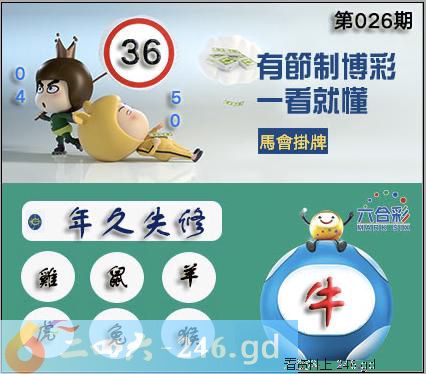 2026026期2026年026期正版彩图挂:36 爆:牛 挂牌成语:年久失修 挂牌出肖:鸡鼠羊虎兔猴