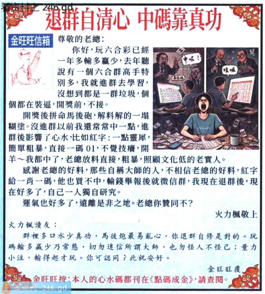 032期:金旺旺信箱彩民推荐→→《退群自清心 中碼靠真功》