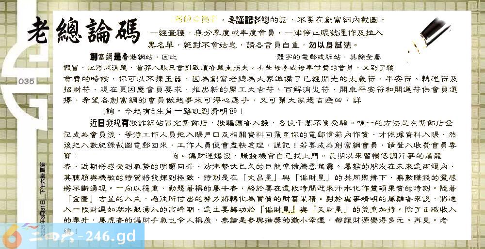 035期:六合皇金句/老总论码/萧公子/林大师/五行夺码/老总信箱截图