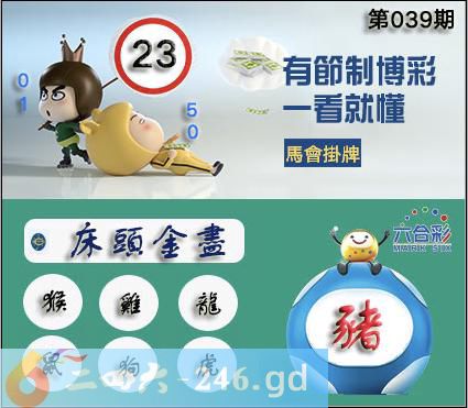 039期正版彩图挂:23 爆:猪 挂牌成语:床头金尽 挂牌出肖:猴鸡龙鼠狗虎